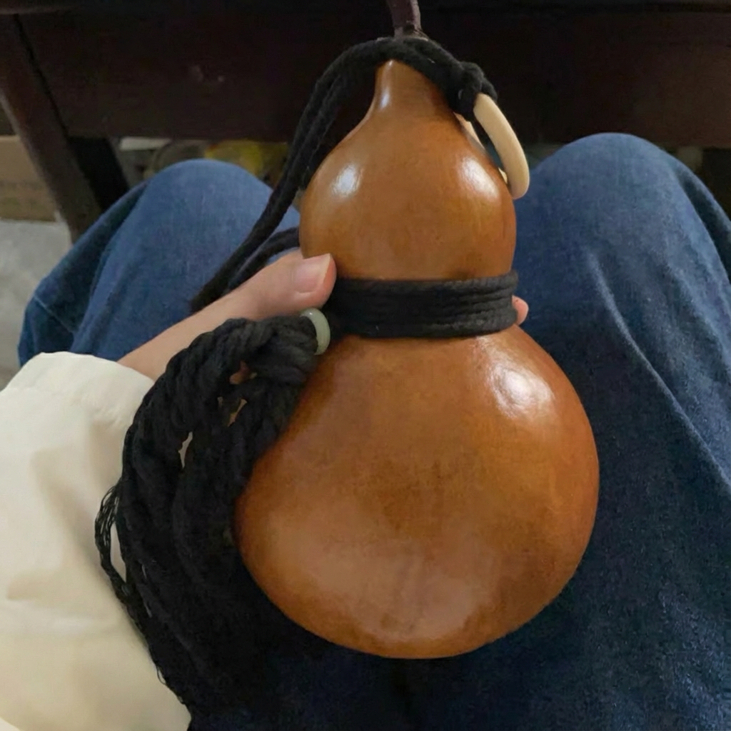 Die Kalebasseflasche wird standardmäßig mit einer schwarzen Trageschnur geliefert. Darüber hinaus bieten wir verschiedene andere Farben an, sodass Sie diese nach Ihrem Stil kombinieren können.