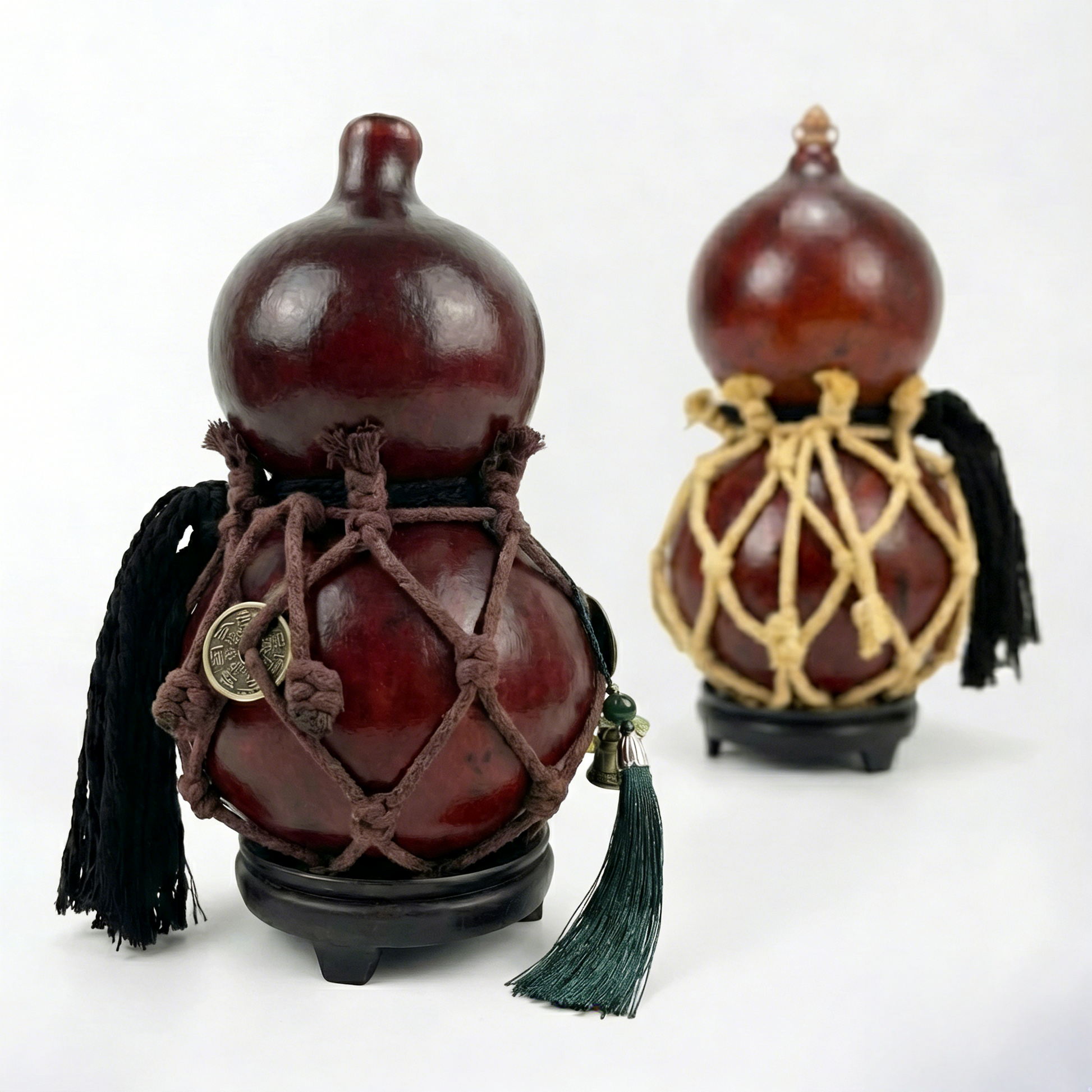 Handcrafted urushi lacquer gourd bottle, traditional Chinese and Japanese gourd drinking vessel